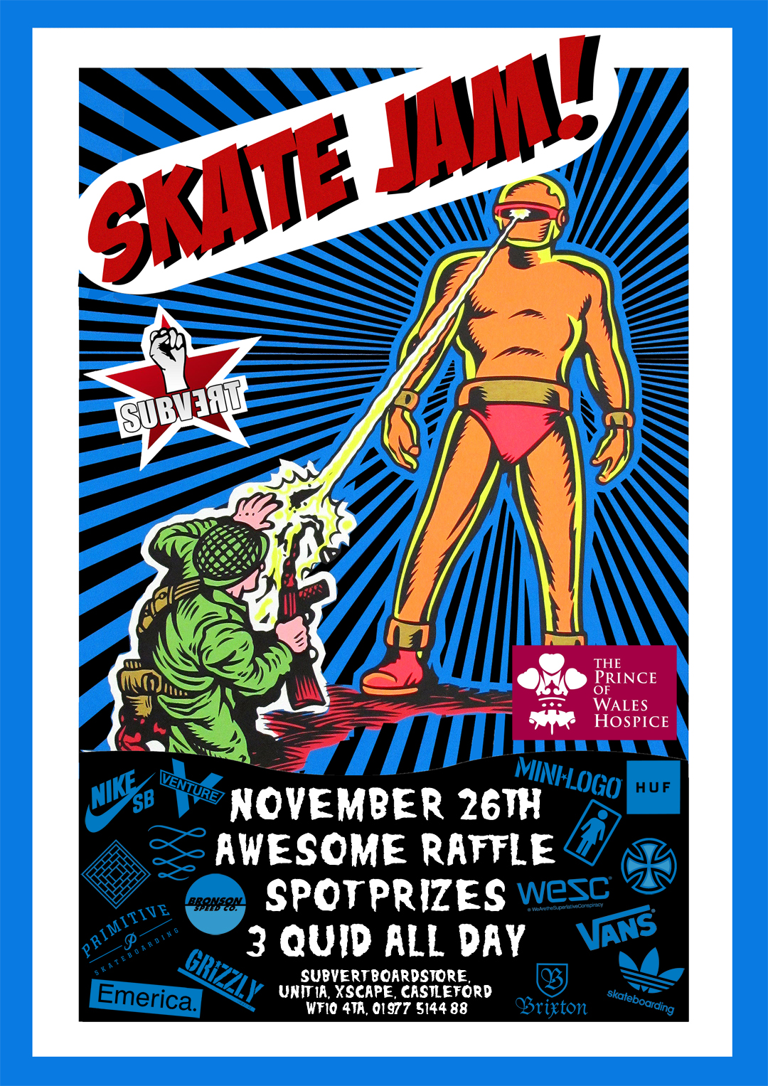 Castleford’s Subvert will be holding this year’s Subvert Skatepark Jam and Charity Raffle on the 26th of November. Plenty of West Yorkshire heads are bound to be in attendance and a good session is definitely forecast. Check out details via the flyer below, scroll further down for last year’s edit by Olly Roberts and head down if you’re in the area!