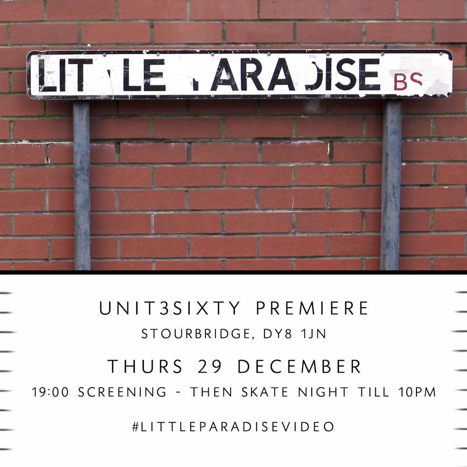 To celebrate their last skate night of the year, on the 29th of December Unit 3Sixty are having a screening of James Harris’ new video ‘Little Paradise’ featuring the talents of Andy Coleman, Nicky Howells, Dave Snaddon, Jess Young, Josh ‘Manhead’ Young and Ryan Price.