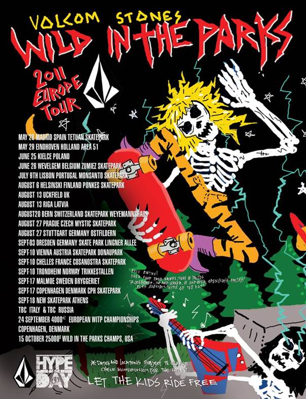 As with previous years there are 14 and under and 15 and over catagories for the unsponsored types out there hoping to get involved with mad Volcom product up for grabs, and the sponsored/pro category with cash-money on the line! In addition to the prizes on the day, the top three placed humans in each category also qualify for the European “Wild In The Parks” finals in Copenhagen in September, so get yourself along!