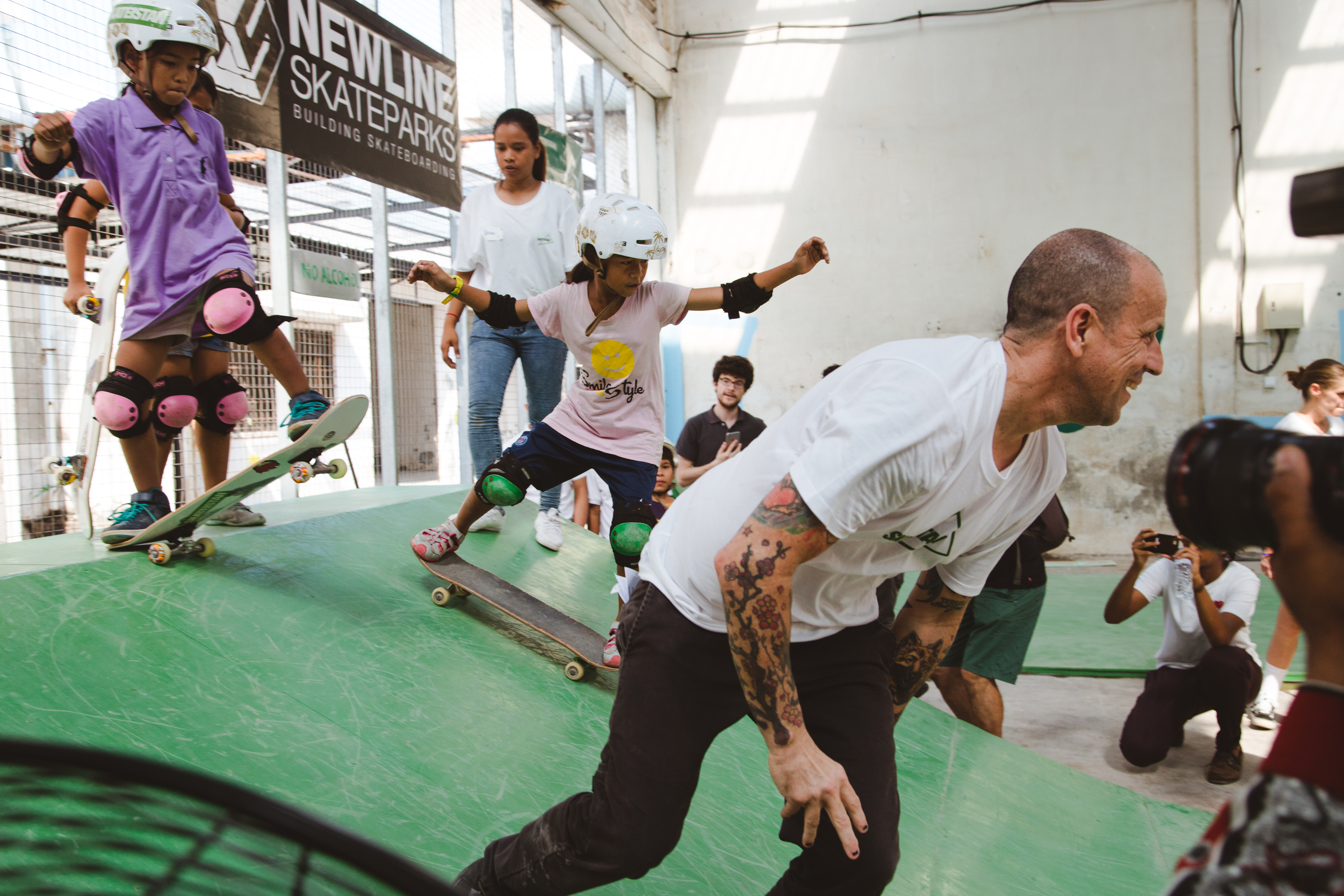 As soon as the ribbon was cut by students to officially open the Skate School, girls took to the new 500 square meter skatepark to put on a demo for the crowd – dropping in from the highest ramps and showing off new skills they had already learned on the concrete features built by New Line Skateparks. This was followed by a pro skate demo in which 9-year-old Sky Brown wowed the local children (and her new friends) on the mini ramp. There was also breakdancing, a magic show, interactive wall art and a 360-degree nature experience. It was a magical day celebrating the power of skateboarding and creativity to change the lives of children in Cambodia.