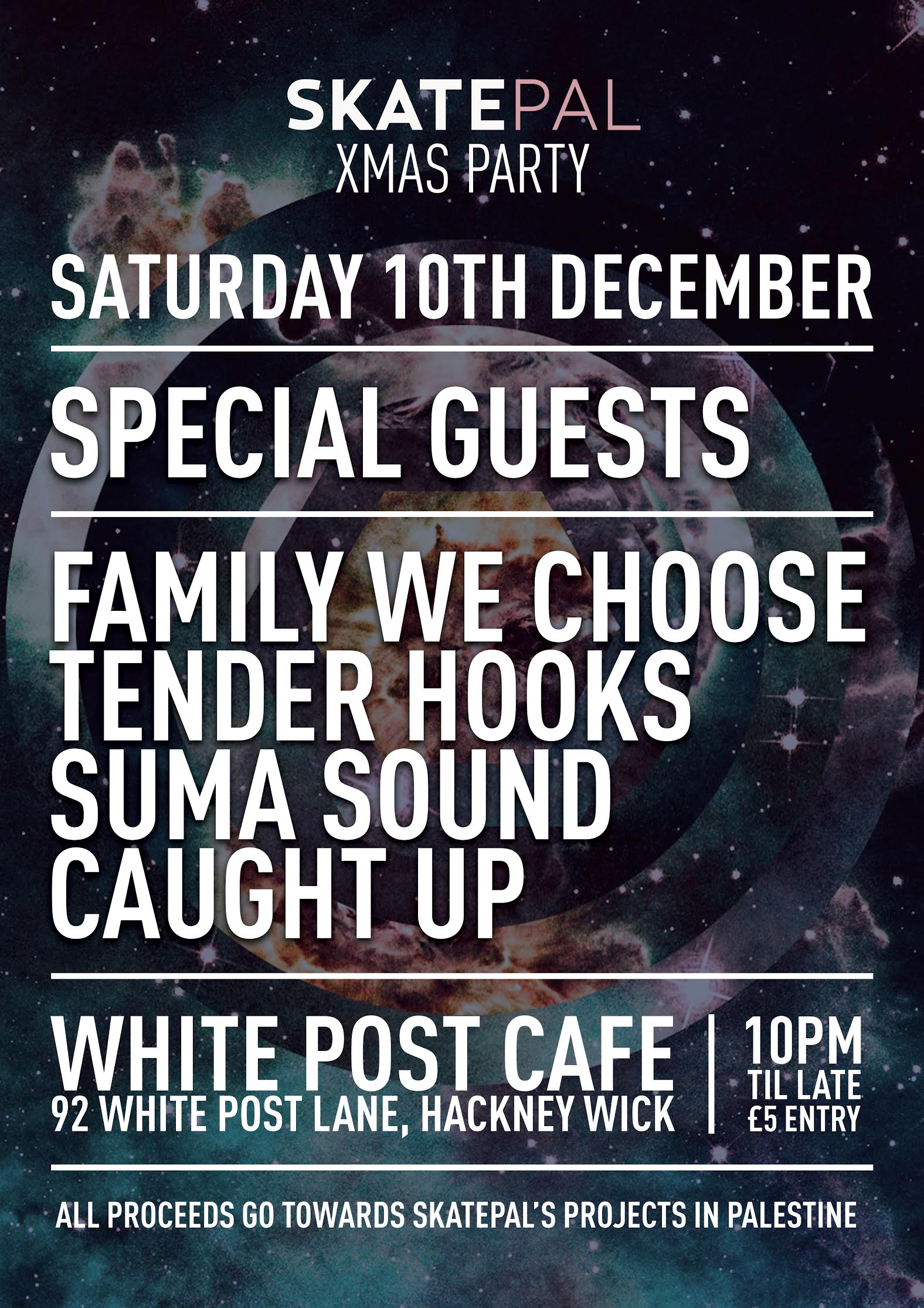 SkatePAL are having a Christmas bash this December, with the SkatePAL Xmas Party taking place on December the 10th at the White Post Cafe in Hackney Wick. Kicking off at 10pm and with the fiver entry price going straight back into the charity and its projects, this is going to be one to pay a visit to if you’re in the area. Check the flyer for details, click on it for more and pencil it in…