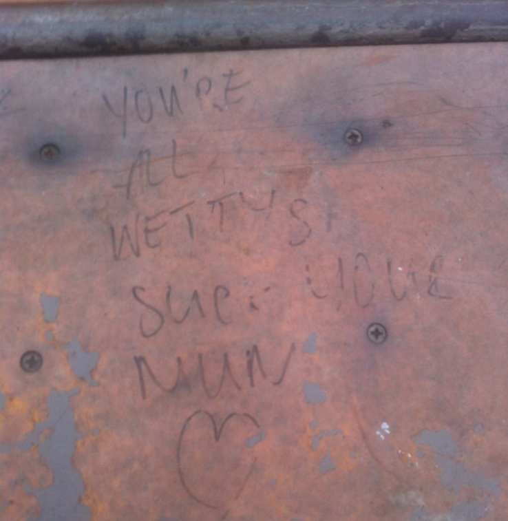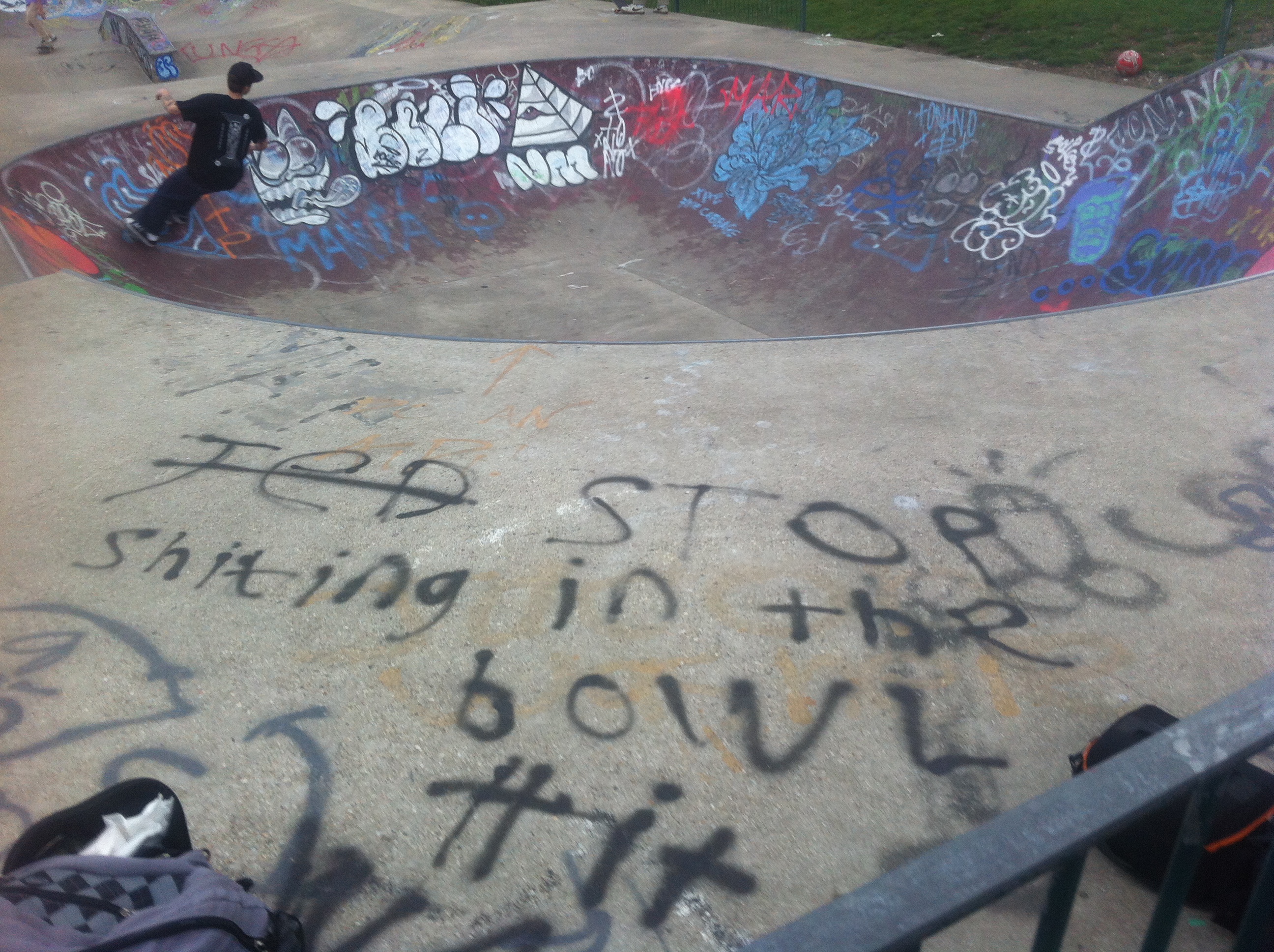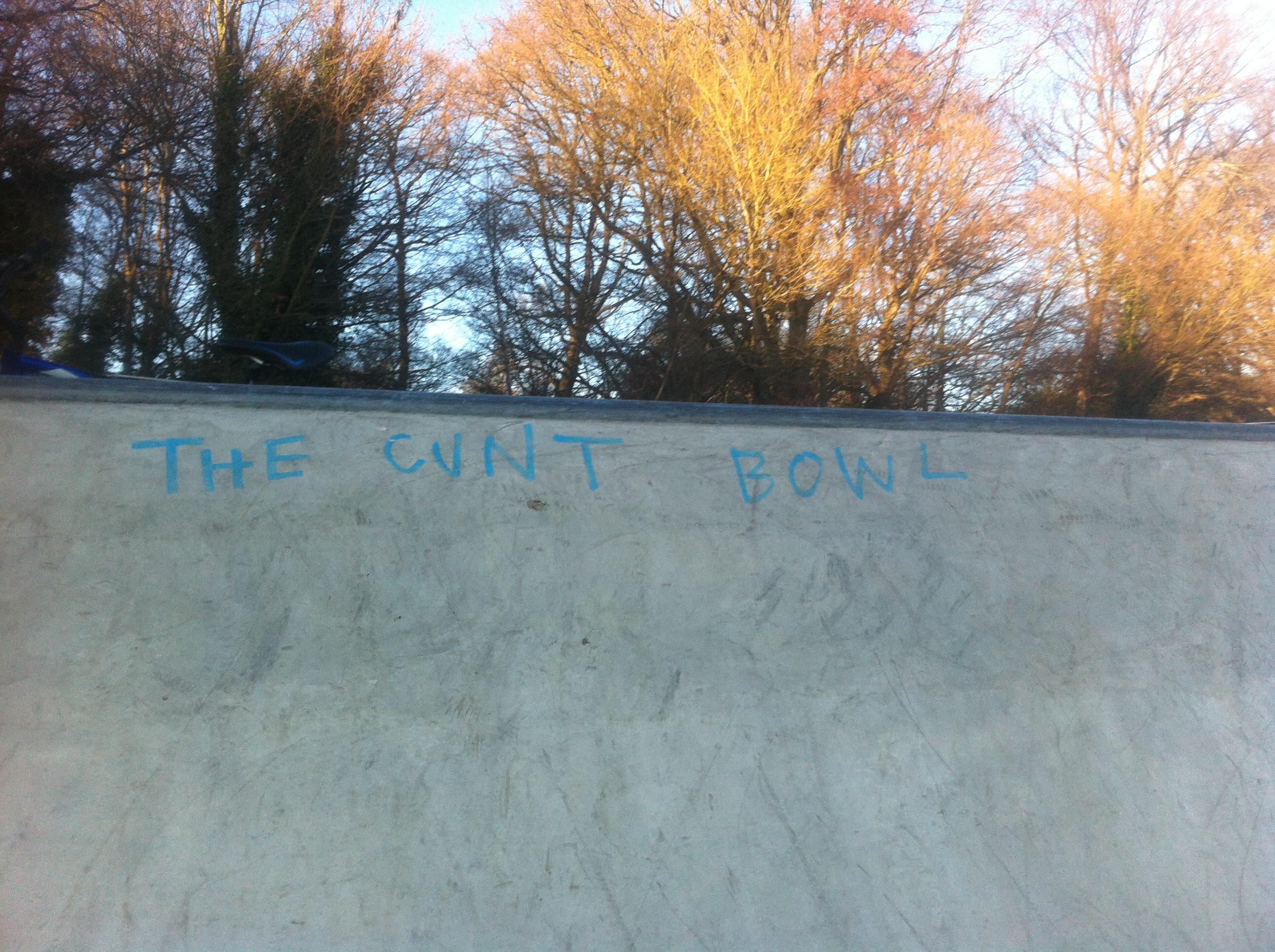 Crystal Palace park has a policy of attempting to remove graff within 24 hours, but they weren’t quick enough to stop me capturing ‘The Cunt Bowl’ for posterity…