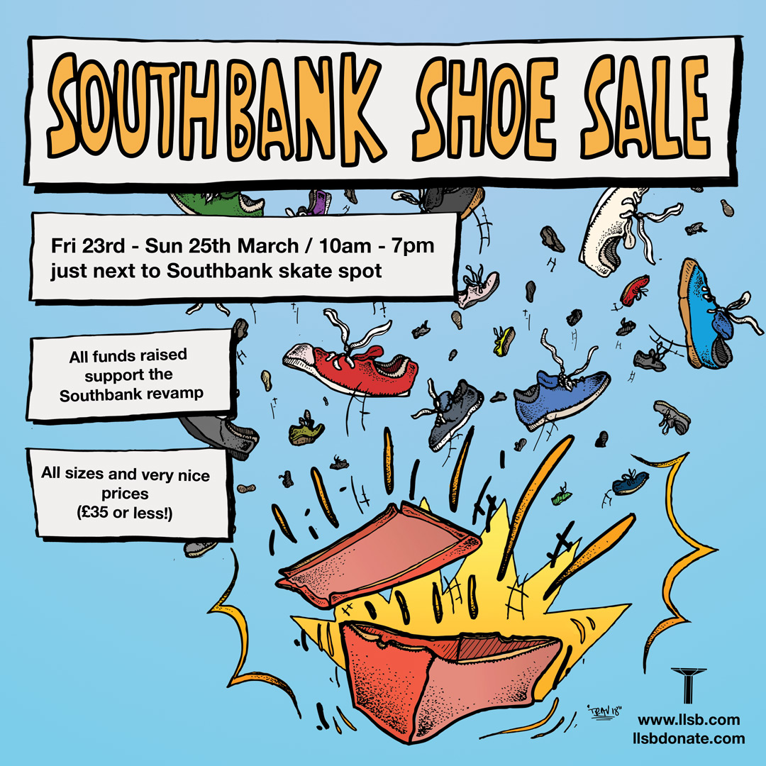 The Southbank Flash Shoe Sale will be being hosted by Long Live Southbank, next to the skate spot itself, from Friday the 23rd to Sunday the 25th of March and from 10am to 6pm each day. With all shoes at £35 or less and all funds raised supporting the planned revamp of the currently closed part of Southbank, if you’re in London then there are basically no excuses to miss this one!
