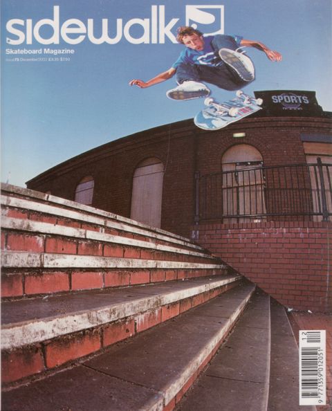 “You have twenty seconds to comply”. Neil ‘Copington’ Smith switch varial heels at the Sports Cafe stairs in Cardiff. – Sidewalk 75, December 2002.