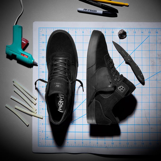 For its debut, the Ellington Vulc is available in a tonal black colorway exclusively at Crown Coalition retailers. Comprised of roughly 250 independent skate shops, the Crown Coalition is a federation of core skate shops selected for their efforts to promote grassroots skateboarding at a local level.