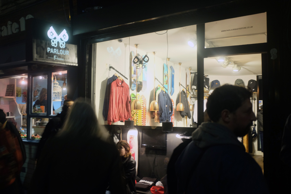 Last week saw the opening night of the ‘Out-Takes’ exhibition at Parlour Skate Store, with a selection of previously unseen works from four skateboard photographers. Leo Sharp, Carl Wilson, Jason Lewer and Jerome Loughran provided the captured images which graced the walls, cold beers sat in ice-filled bins and a solid crew turned out on Thursday night to start their weekend early.