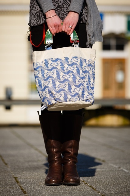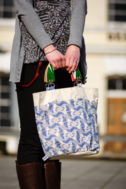 Emma has designed the fabric for the bags, Thrashion have produced handles out of recycled skateboards tails, and the project is set to be officially launched on April 26th – check the Thrashion site for more details.