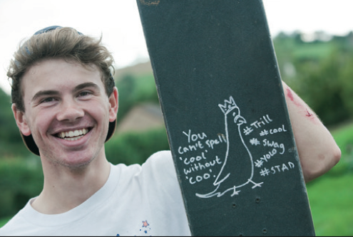 – Well, I’ve got bucket loads of swag! (Laughs), nah, only joking! I’m 19 years old from Barnstaple, North Devon, and I spend most of my time trying to find spots to skate, but in this area of ours it’s not so easy, considering it’s all green countryside…