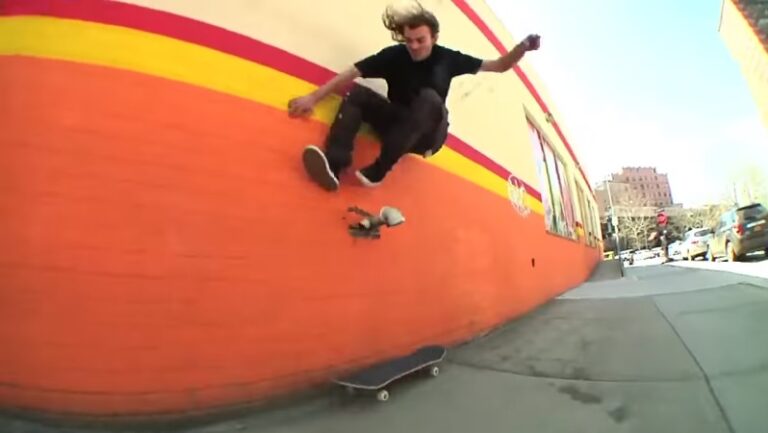 Max Palmer broke his elbow late last year, so dedicated his downtime to filming the crew while they were shredding. The result is the just over 30 minute Iphone edit ‘Twisted Illusion’ – New York-centric skating from Jesse Alba, Genesis Evans, Conor Prunty, Max Palmer, Cyrus Bennett, Alex Olson, Andrew Wilson and more plus a banger-filled soundtrack ranging from Susan Cadogan to hardcore punk era Beasties…