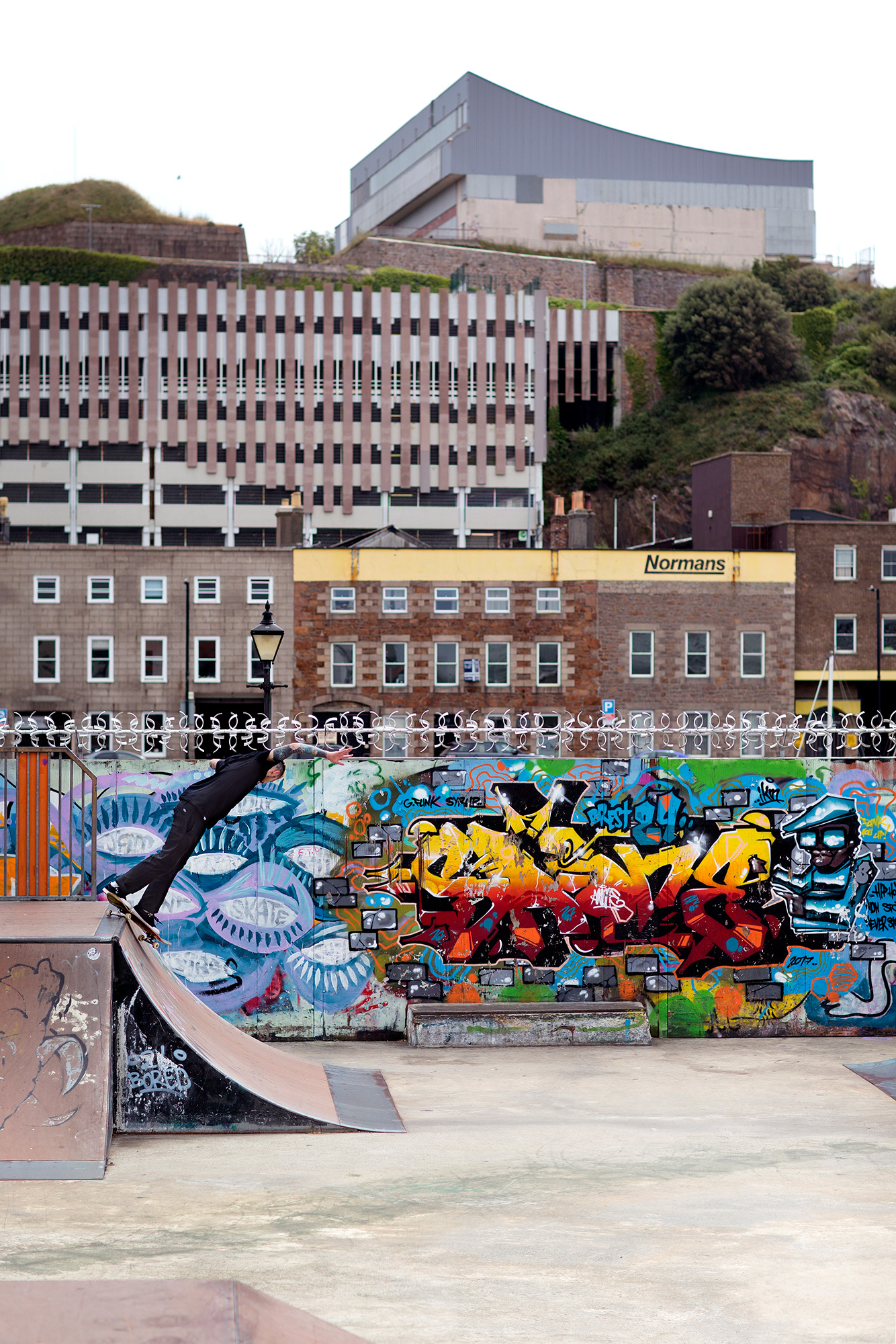 One Friday night in early June I had a call from Edd Martin at DC asking me if I wanted to accompany a handful of riders from the UK DC team on a whistle-stop mission to Jersey, putting on a demo at the skatepark in St Helier and hitting up as many street spots as time would allow over the course of a day and a half.