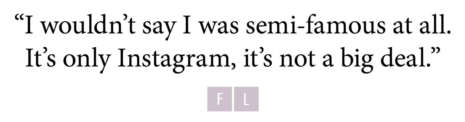 Ha ha. I wouldn’t say I was semi-famous at all. It’s only Instagram, it’s not a big deal.