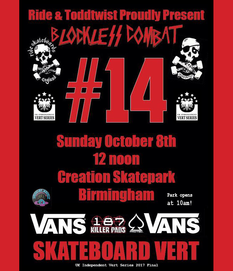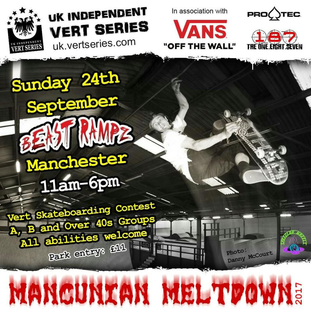 Sunday 24th September 11am – 6pm. Pads at the ready for the UK Independent Vert Series ‘Mancunian Meltdown’ at the mighty Beast Rampz in Manchester.