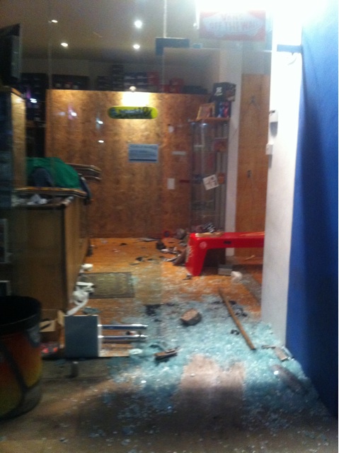 As the well publicised rioting continues to spread throughout the UK, skate shops in Manchester and Birmingham were hit by mindless looting last night – after supporting the scene for more than twenty years, Ideal Skateshop in Birmingham was hit during looting in the Digbeth area, with decks and clothing been taken. Further up the M6 in Manchester, the Vans Store in the Northern Quarter could be seen getting looted on a variety of news channels, this time with shoes and clothing been stolen.