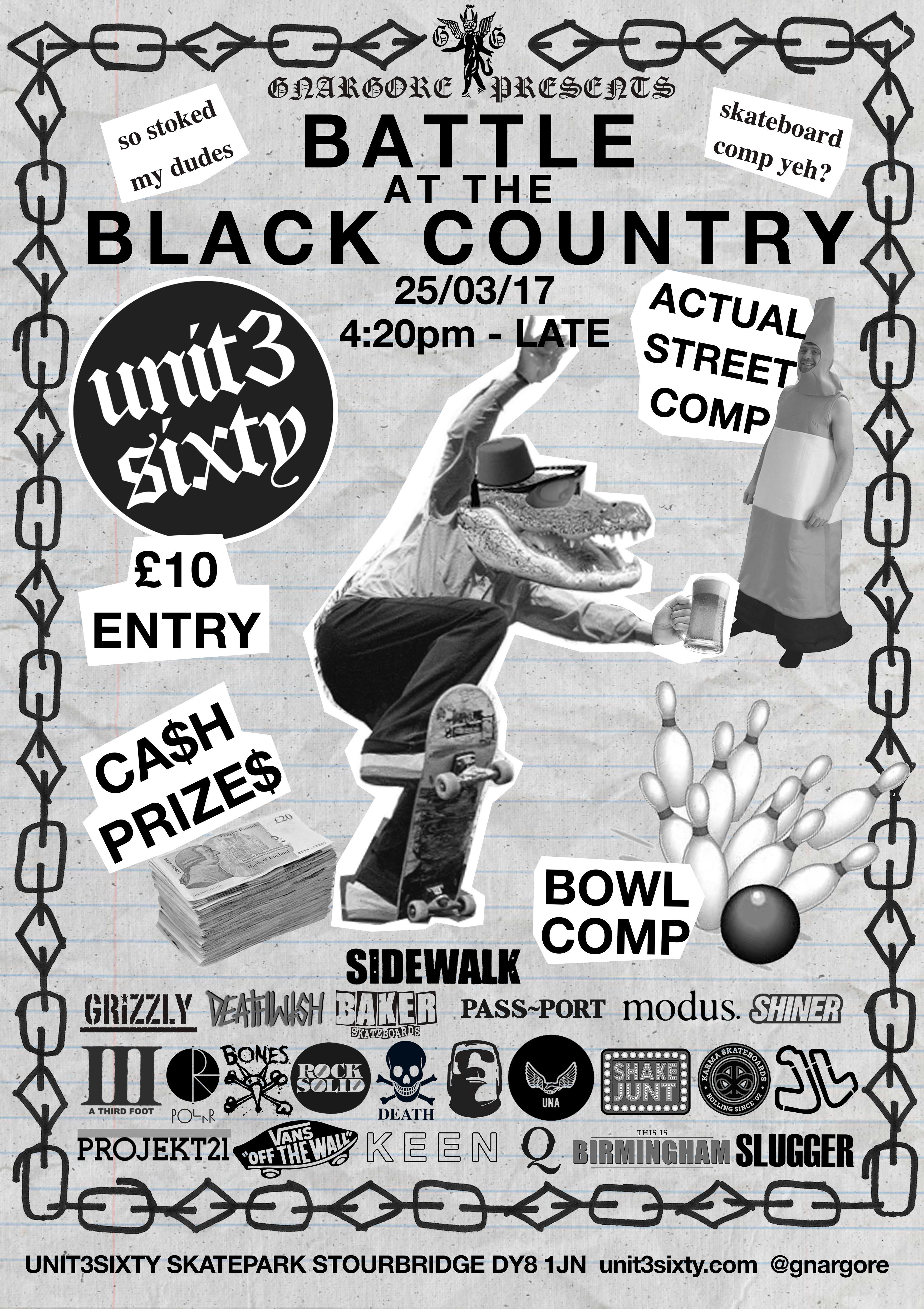 This year’s Battle at the Black Country will return to Unit 3Sixty at the tail end of March (25th) and it promises to be a good one if last year’s is anything to go by! With a number of jams based around the street course and whatever ideas pop into people’s heads on the day (the ‘tricks over a band’s vocalist while he plays lying down’ was a particularly good one last year), alongside the Gnargore Bowl Jam making a return, we can highly recommend getting to Stourbridge for this one.