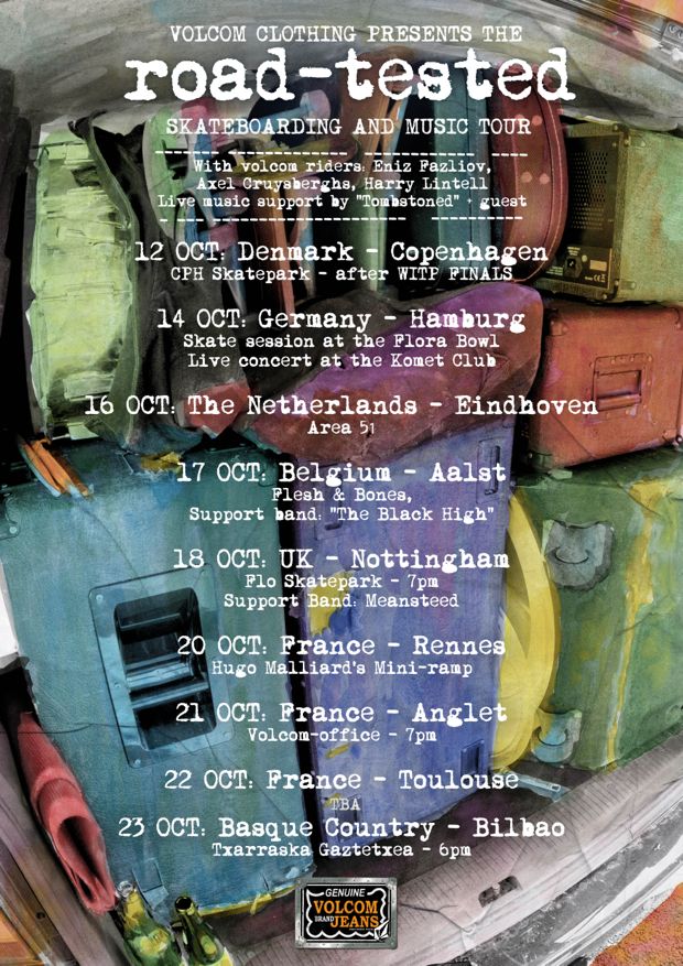 On Friday night Volcom are bringing their Road Tested tour to the venue with live music from Tombstoned and guest support act Meansteed (featuring Death Skateboards rider Steak). Their European skate team will also be in attendance – Harry Lintell, Eniz Fazliov and Axel Cruysburghs.