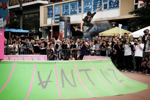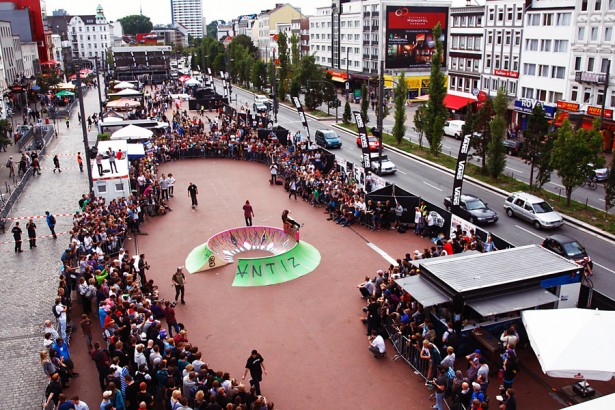 This years European leg of Vans “Downtown Showdown” took over the red light district in Hamburg on Saturday, with 5,000 spectators coming along to witness Cliché, Element Europe, Death Skateboards and Antiz battle it out for for the €50,000 prize money on offer.