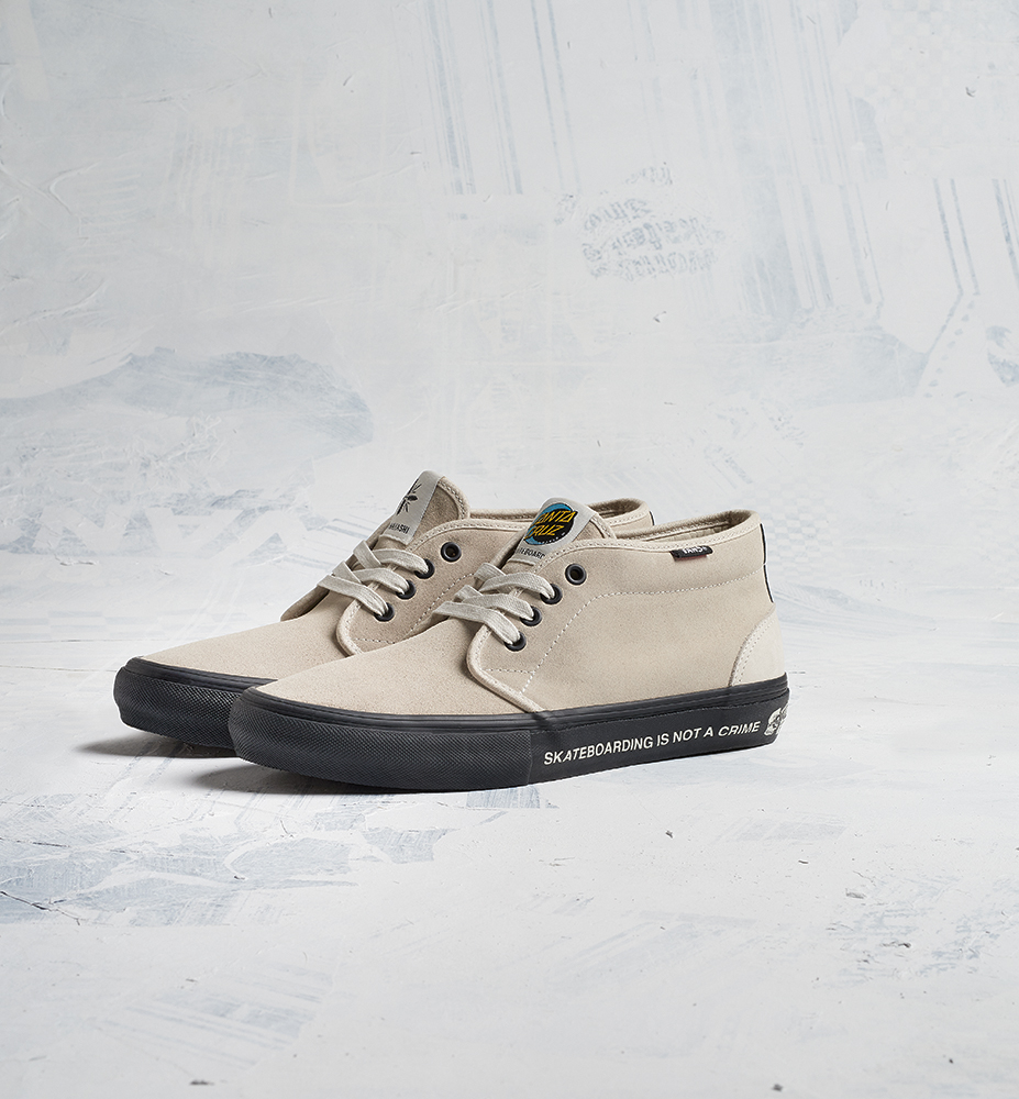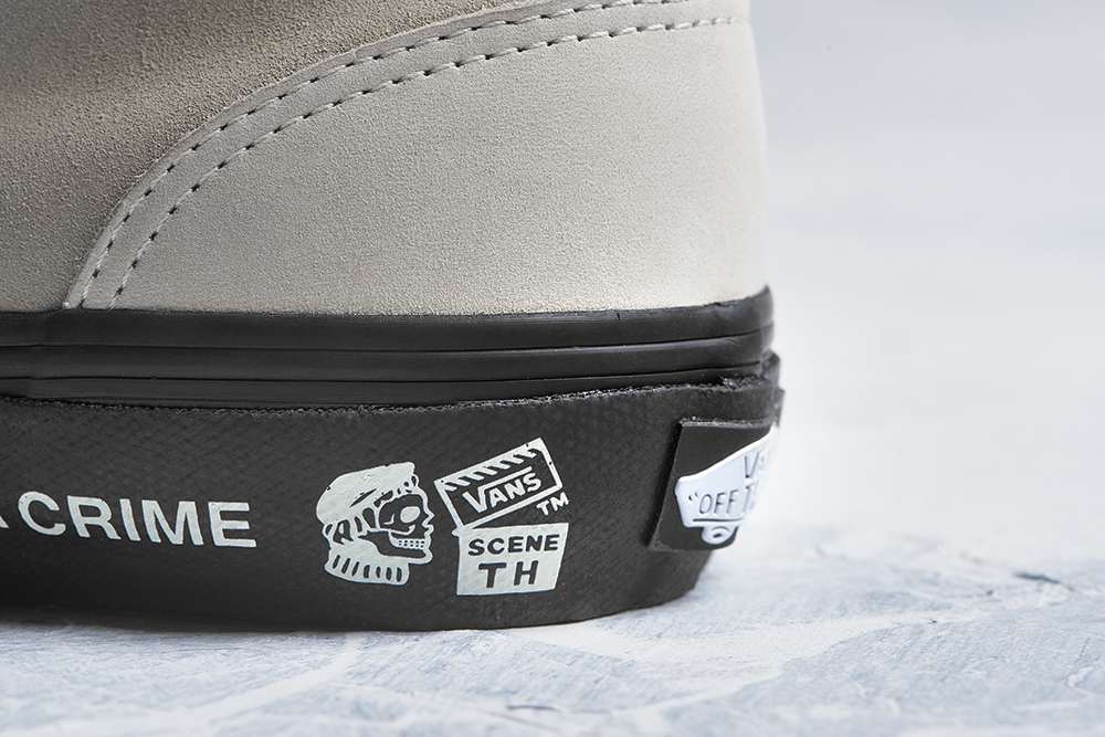 – Vans’ original Sidestripe and Santa Cruz graphics, including the famed “Skateboarding Is Not A Crime” slogan displayed on the foxing of each style, along with original skull artwork by TH