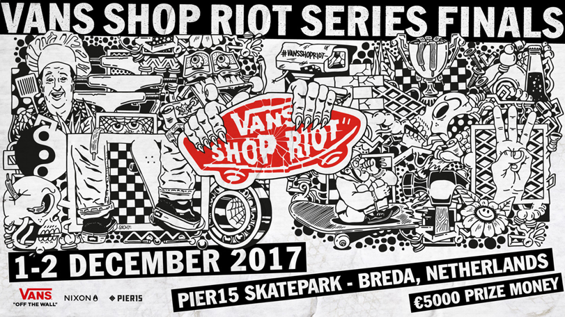 The Vans Shop Riot 2017 Finals will take place at Pier 15 Skatepark in Breda, Holland this coming weekend (1st-2nd December). With €5000 on the line then the teams who’ve made it through will definitely be going for it – expect all the gnarly skateboarding you can shake a clog at and keep an eye out for our coverage dropping once the event is done! In the meantime, glean the necessary information from the flyer and press release below then check out previous legs to see who’s in the finals…