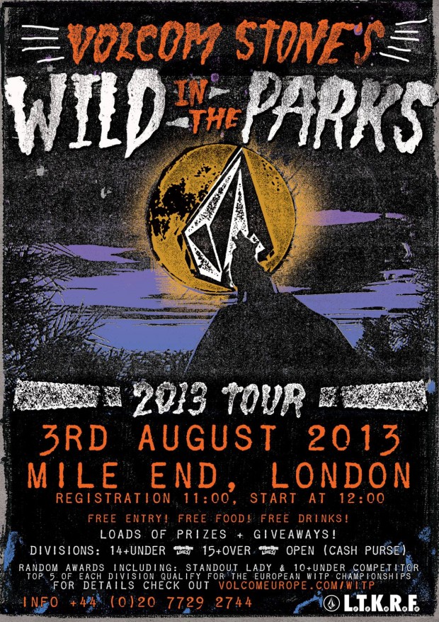Volcom Stone are bringing their Wild in the Parks event back to the UK this summer, with a day of comps at Mile End Skatepark on August 3rd (yep, that’s tomorrow…).