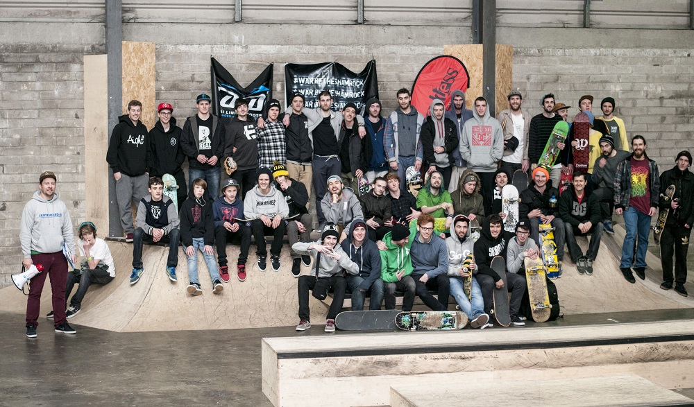War of the shamrocks has been held once before back in 2010, and it was about time it was revived with a couple of shock paddles of craic and a prayer. We had folk travelling from all over north and south of Ireland to try and win some prizes and the latest coveted hand crafted wooden war trophies. The event was organized by Skateboard:NI and was proudly sponsored by: