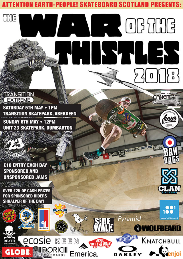 The yearly Scottish shred-fest will take place on May 5th/6th, at Transition Skatepark Aberdeen and Unit 23 Skatepark Dumbarton respectively. As usual Ali Menzies and the crew at Skateboard Scotland have organised a belter and, with sponsored and unsponsored jams for both days – this has all the makings of a banging weekend.