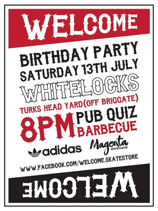 Welcome Skateshop in Leeds are celebrating their third birthday later this month, with another top notch evening of boozing, BBQing (so long as the weather plays ball) and a skate related pub quiz.