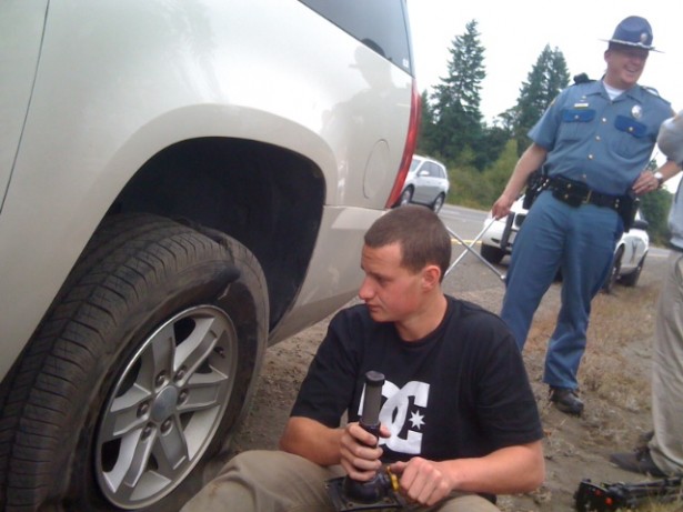 ...then on our drive north to Seattle, this wheel decided to blow out on me at 70mph. That was fun.