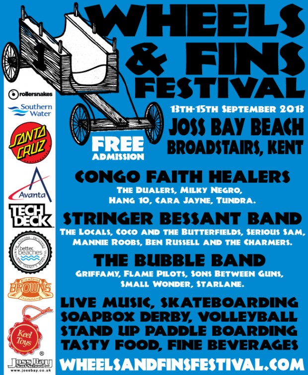 The Wheels and Fins festival is returning to Joss Bay Beach in Kent this coming weekend, for another year of skating, live music, soapbox derby, downhill carnage and more!