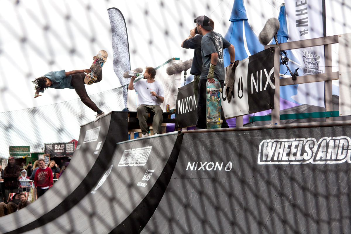 Jordan Sharkey ended up taking the Best Trick Prize, returning to his native Wales clutching a one-off Nixon watch courtesy of an array of technical bluntery including blunt 360 flip out, blunt double flip out, and remarkably, blunt triple flip out resulting in a snapped board which Jordan continued to skate until he was left with nothing but trucks.