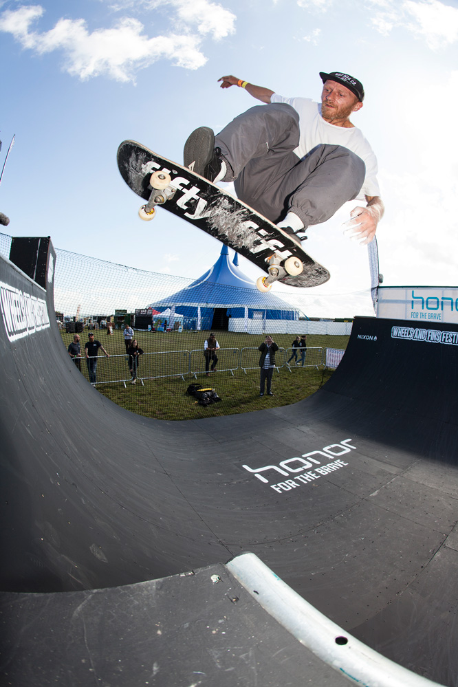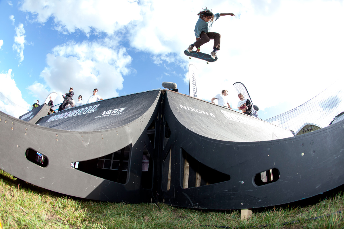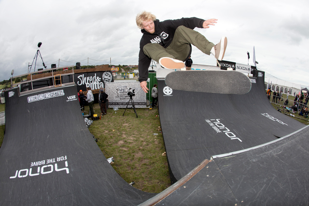 This year saw the long-standing UK Mini Ramp Champs event move to the Wheels and Fins Festival to take advantage of what was supposed to be glorious sunshine in a highly picturesque setting. Unfortunately, (although highly predictably), the weather tried its hardest not to play ball with intermittent showers across both days but with the help of a few squeegees and a large dose of positivity, everything still fell into place, even if the finals did basically take place during a mini hurricane.