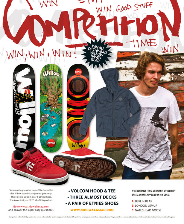 Someone is gunna be stoked! We have all of this Willow based gear to give away. Three Almost decks, Volcom gear and Etnies shoes! You know...