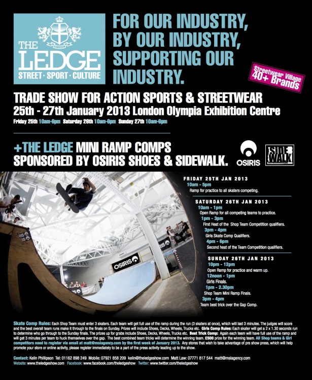 Following the carnage last time around back in September, The Ledge Tradeshow is set to return to the London Olympia in January with another two day mini ramp spectacular, including a shop battle, girls comp and best trick jam with serious loot on the line.