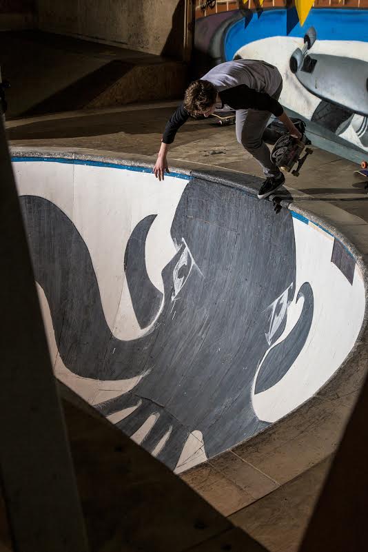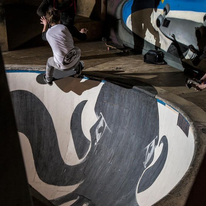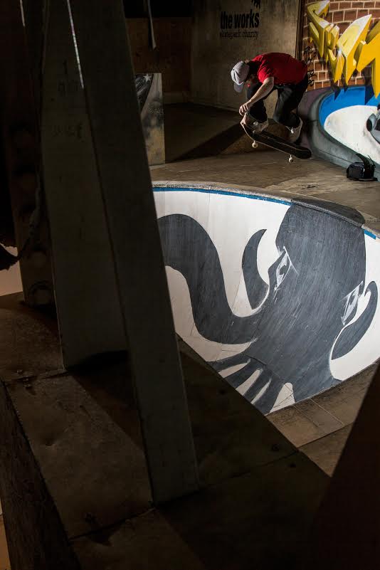 8pm found me limping through the doors of The Works, hoping that a last minute burrito would counteract hours of bodily abuse. The pool hadn’t seen a good session in some time but a tight knit crew was up for the mission, the event didn’t clash with anything else in the area and it seemed like the stars had aligned…with one small problem. Over exuberance had seen the skatepark’s staff paint the entirety of the pool four days before the event which, due to the paint used and the levels of dust in the air, made for less a pool party and more a slip n slide. If you’ve ever hit a patch of black ice during a winter hillbomb then you’ll have some sense of how the pool felt to skate, despite the best efforts of the staff and Avid to fix the problem in the run up to the event. After a couple of near death experiences I resigned myself to either skating the jump ramp room or getting drunk, one of which I achieved with much more success than the other (guess which?).
