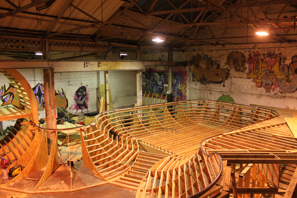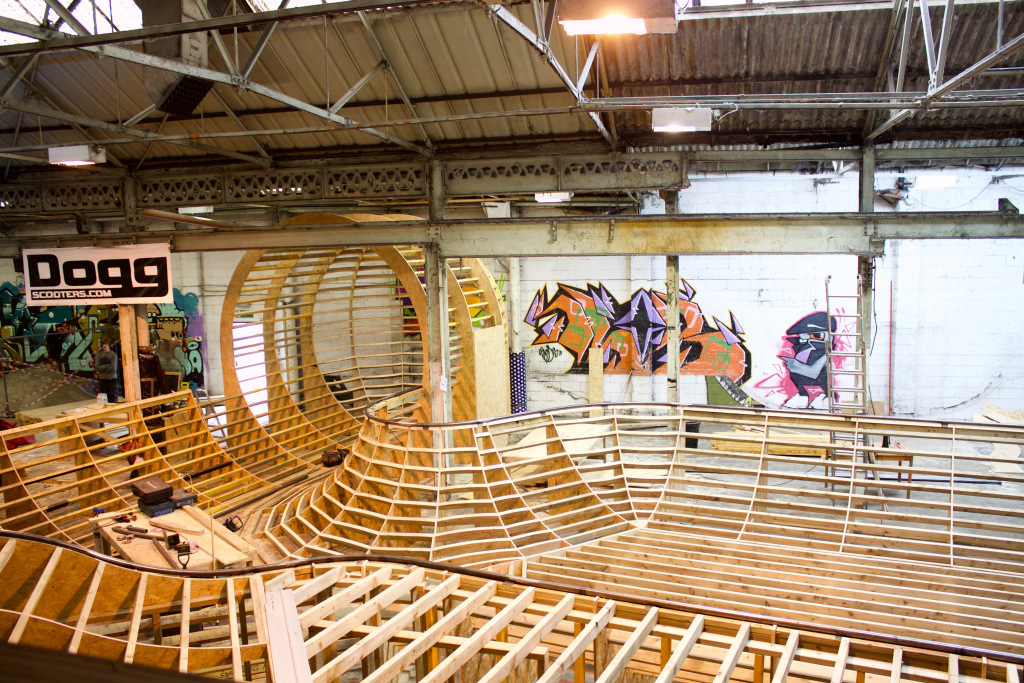 The Works Skatepark in Leeds has been working on a new project to fill the space where the pool used to reside – check the first build photos here. Judging by the plans and these first views this should be a good one, with a flowing bowl leading into a full cradle. Keep an eye out for more info as we get it and some more photos via their website.