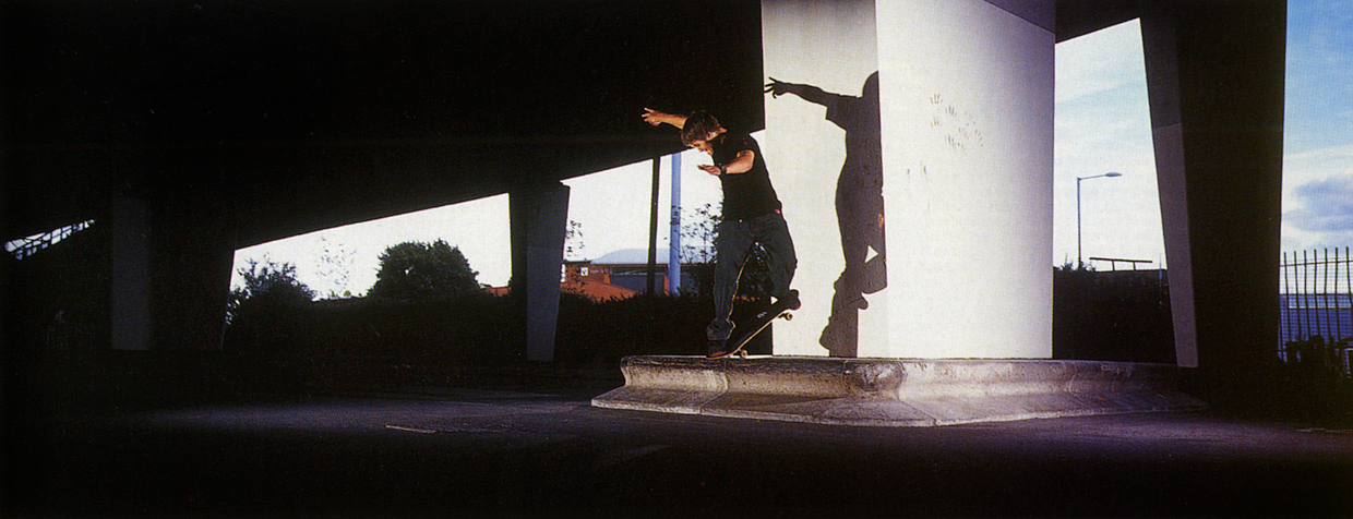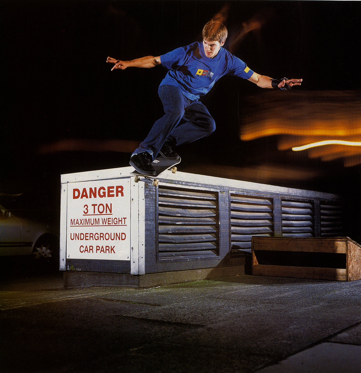The Gasworks gap had a element of myth to it, as despite the fact that the stairs and flat area behind the gap were sessioned hard for years, until Woody took his top off, nobody had even considered that ollieing the gap from the street, over the fence and into the lower level was a possibility. This one didn’t take such a toll on his paper-wrists thankfully, and after a heroic sesh back in 2002 with Neil Chester in tow, Woody added another notch to his bedpost.