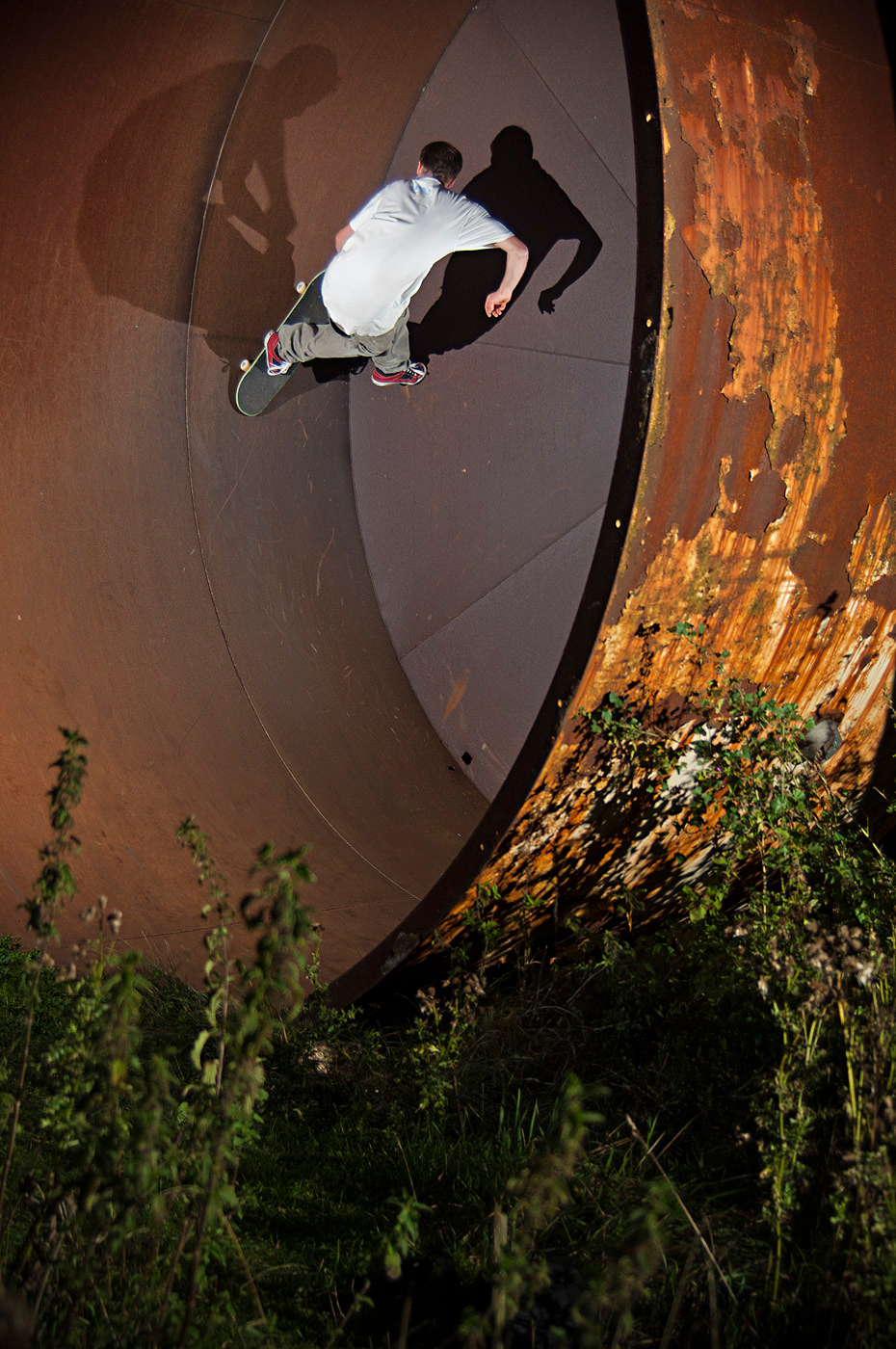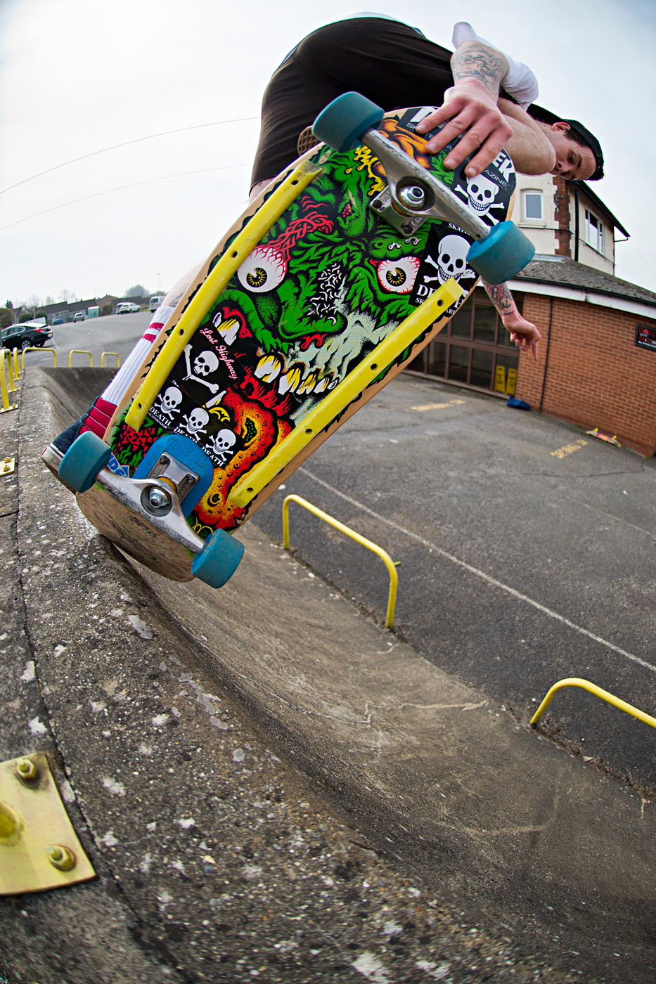 This spot takes some serious hard work to get to the top of and if your shins catch the barriers at the bottom then, well… I won’t go into that! To make matters worse Callum had a sports hernia that was getting a thorough workout with the uphill run up…But at least his deck looks awesome for the photo! It’s always fun shooting with Callum, it’s always going to look good.