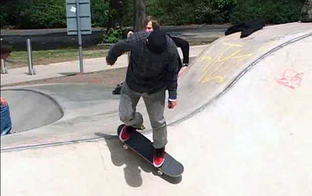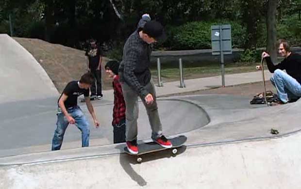 For a backside 5050 grind, it’s pretty much the same technique as doing an axle stall, but you’ll be going a bit faster and going at angle.