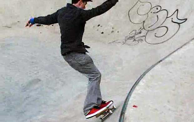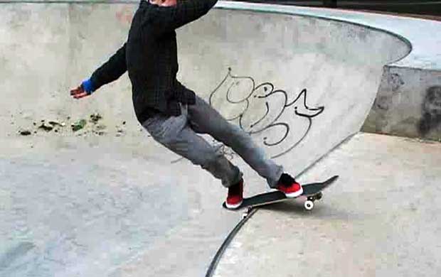 With that one, you’ve just got to make sure your shoulder’s turned away from the coping so your legs follow round where you point your shoulder.
