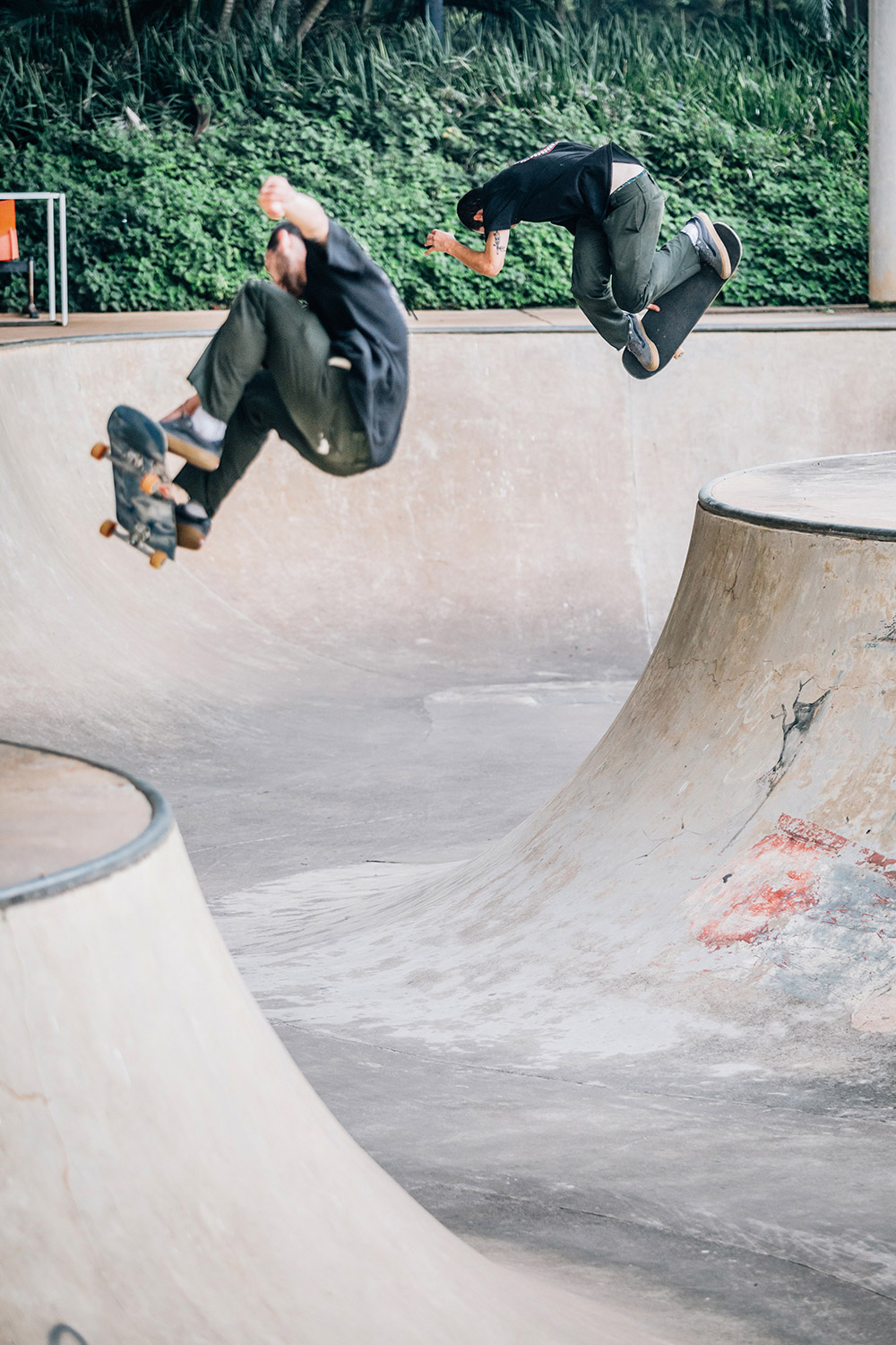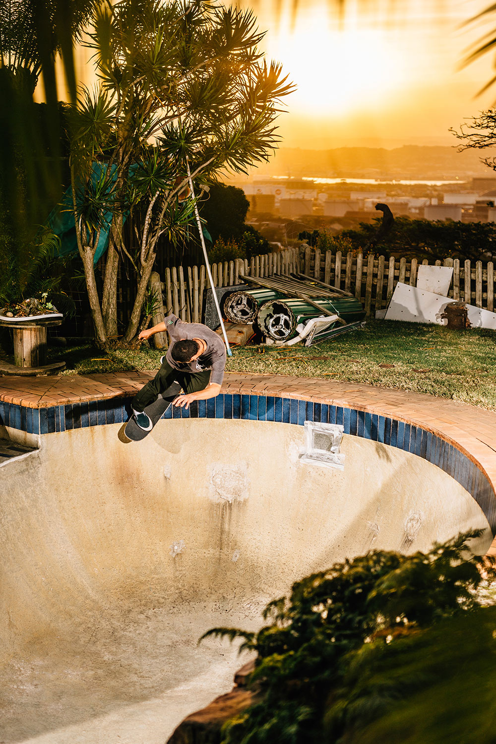 After a week in based in Johannesburg on a more street-orientated mission, we embarked on the 500 mile trip across the country to the surf capital of Durban. This meant good news for the more transition-minded members of our crew as Durban turned out to be a concrete surfer’s wet dream too, with multiple snake runs and the most legit backyard pool anyone could have dreamed of.