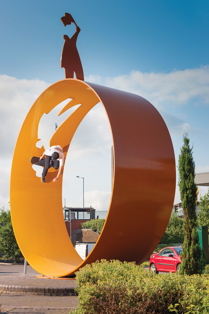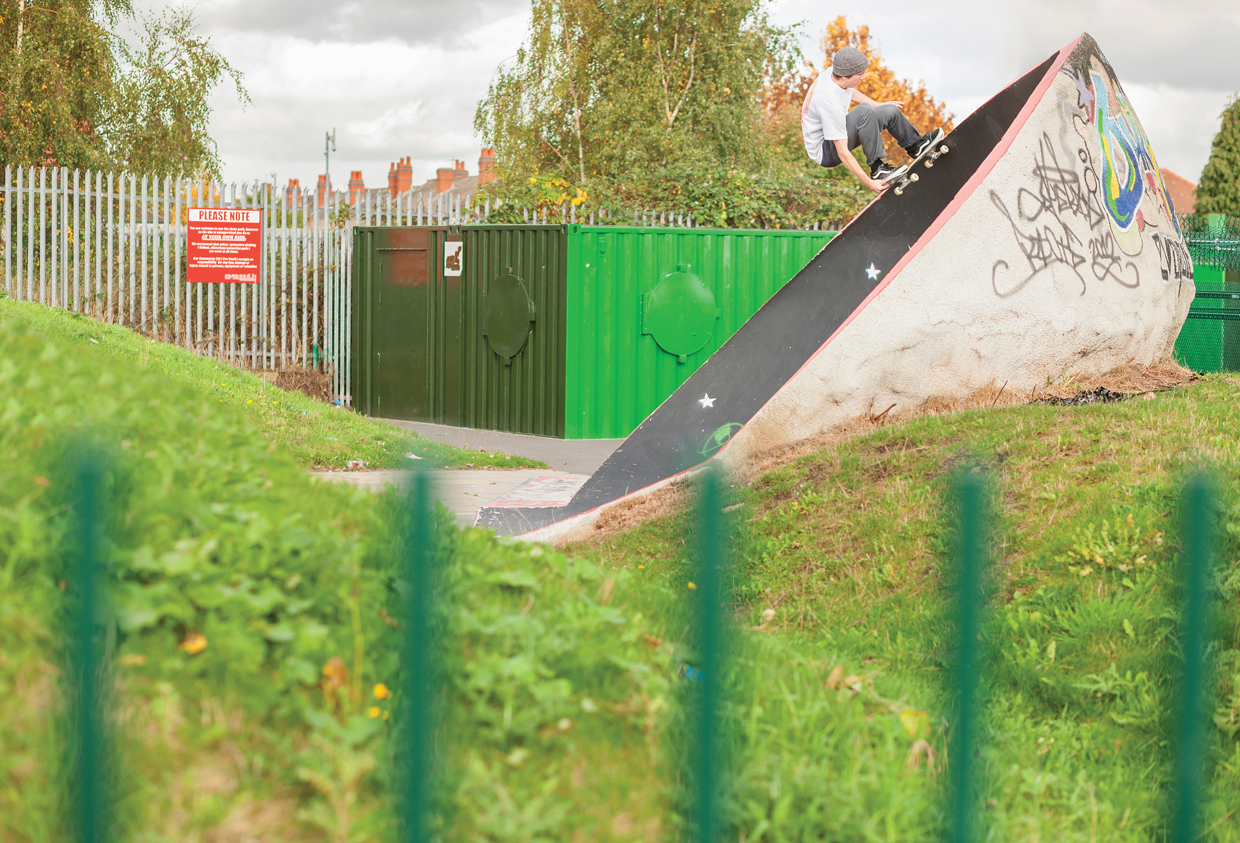 I’m from Stourport-on-Severn in Worcestershire, which is about half an hour south of Birmingham. There was a ramp in a field at the back of my house when I was a kid and I’d occasionally see people skating it when we were playing football on the pitch next to it.
