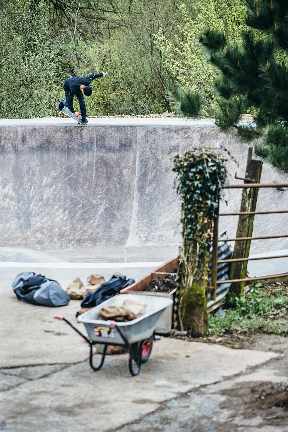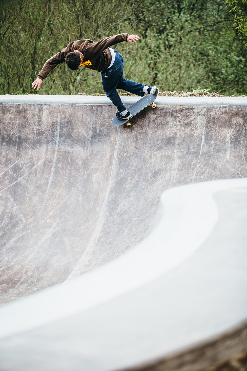 Our trip to Devon to shoot this Sidewalk Sessions – Secret Devon Bowl with Ryan Price and co wasn’t actually on the agenda until the eleventh hour: the original plan had been to link up with Ryan Price and an assortment of Bristol heads and hit the nearby (to them at least) Bath skatepark to take advantage of the sun.
