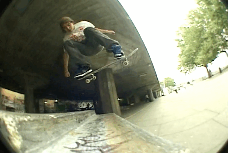 After a few years away from the skateboarding limelight, Alex Moul comes through with a full part for the 1997 Raggy Clothing video 'Juice'.
