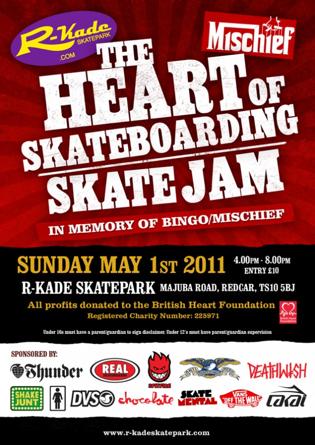 Bod has designed a special “Mischief Forever” shirt which will be available at the “The Heart Of Skateboarding Jam” at R-Kade Skatepark, Redcar, this coming...