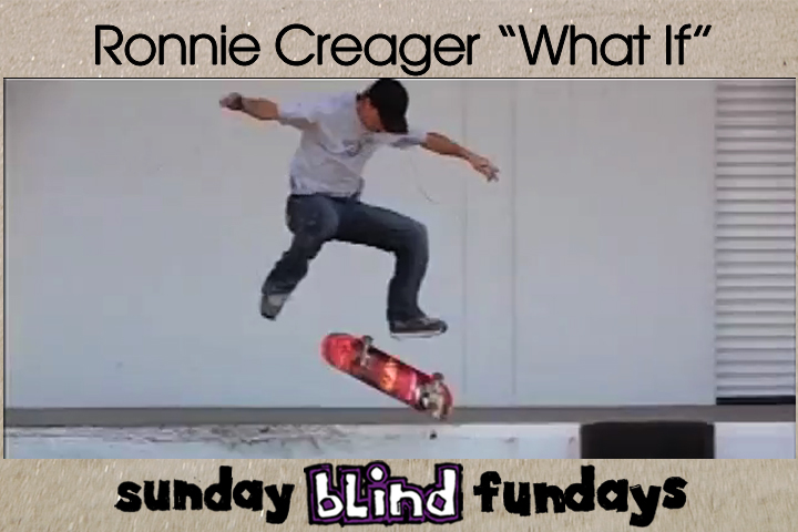 This weeks Sunday Funday clippage from Blind Skateboards is now up, featuring Ronnie Creager as he powers his way through his “What If?” section… http://vimeo.com/56568644
