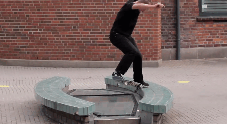 ...handling every street spot in his path with ease whether that spot is a waist high hubba, an awkward Catalan bank or a flashing disco...
