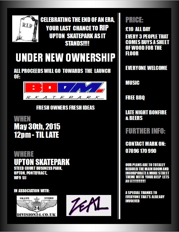 Boom Skatepark, the artist formerly known as Upton Skatepark, celebrates it's second birthday under current ownership with the Boom Skatepark 2nd Birthday Bash on Saturday...