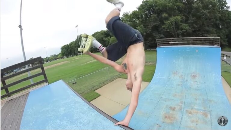 Hitting gnarly bowls and pools like a charging rhino and throwing down a lesser seen 80s throwback move to finish things off.
