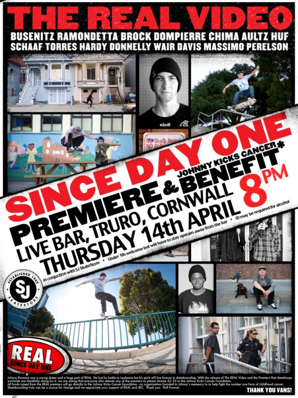SJz Skateshop have stepped to the plate and decided to hold a Truro premiere of the Real Skateboards video “Since Day One” at Live Bar...