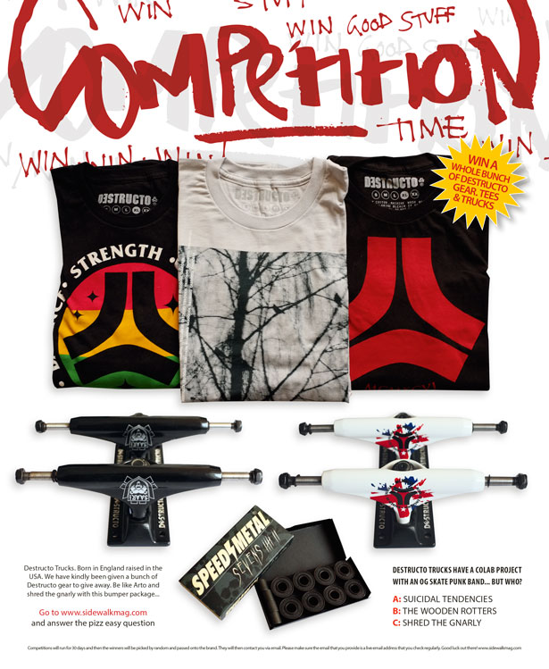 Destructo Trucks. Born in England, raised in the USA. We have kindly been given a bunch of Destructo gear to give away, so be like Arto...