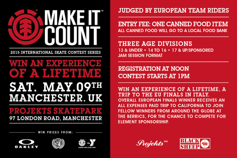 The Element ‘Make it Count’ project has set the date for its UK leg at Projekts Skatepark in Manchester, which is happening this Saturday (9th...
